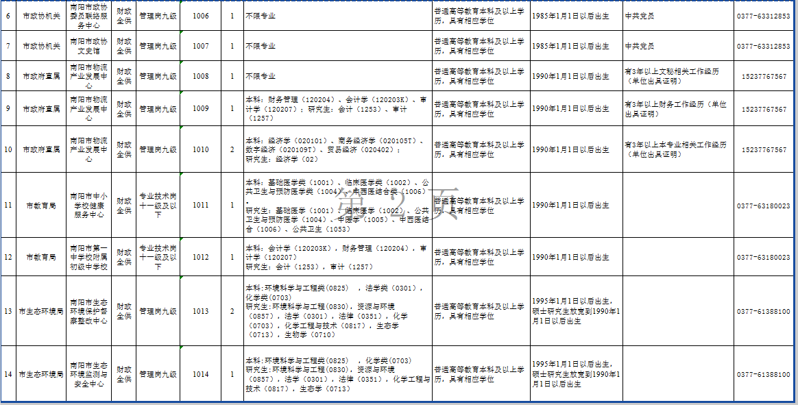 南阳市市直事业单位及市城乡一体化示范区、高新技术产业开发区、官庄先进制造业开发区、卧龙综合保税区、职教园区建设发展中心所属事业单位(功能区乡镇所属事业单位除外)中全供事业编制在岗工作人员。